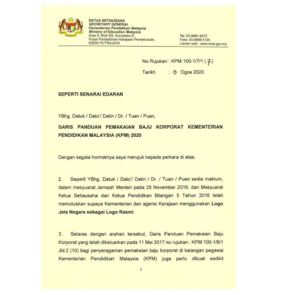 Nampak gayanya tidak semua warga kementerian pendidikan 'alert' dengan perubahan logo surat yang bertarikh 13 mac 2017 itu menetapkan logo rasmi kementerian dan agensi kerajaan digantikan dengan logo jata negara sahaja berkuatkuasa 1 sumber: